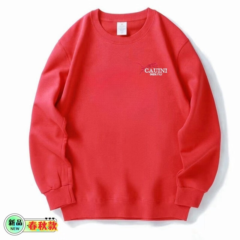 FAHA休闲运动圆领卫衣男女同款华棉秋冬大码宽松百搭长袖上衣打底衫潮 BT红色春秋款 XL(建议120-135斤)