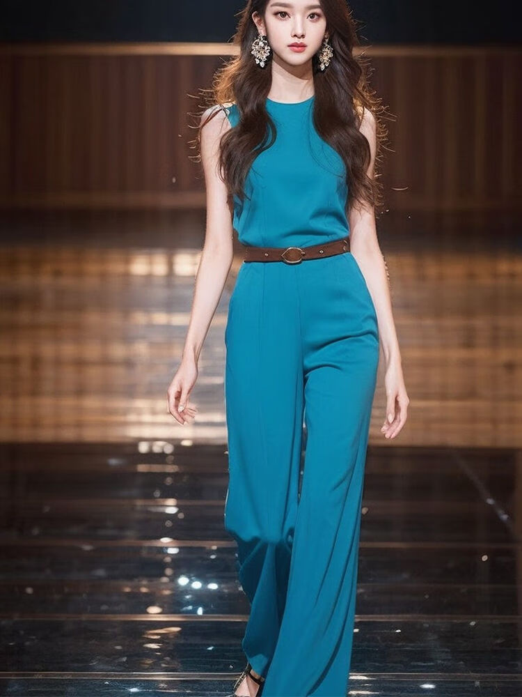 连体裤套装女新款 上档次 高级感时装夏年连衣裤端御姐风气质 蓝色【收藏配腰带 XL
