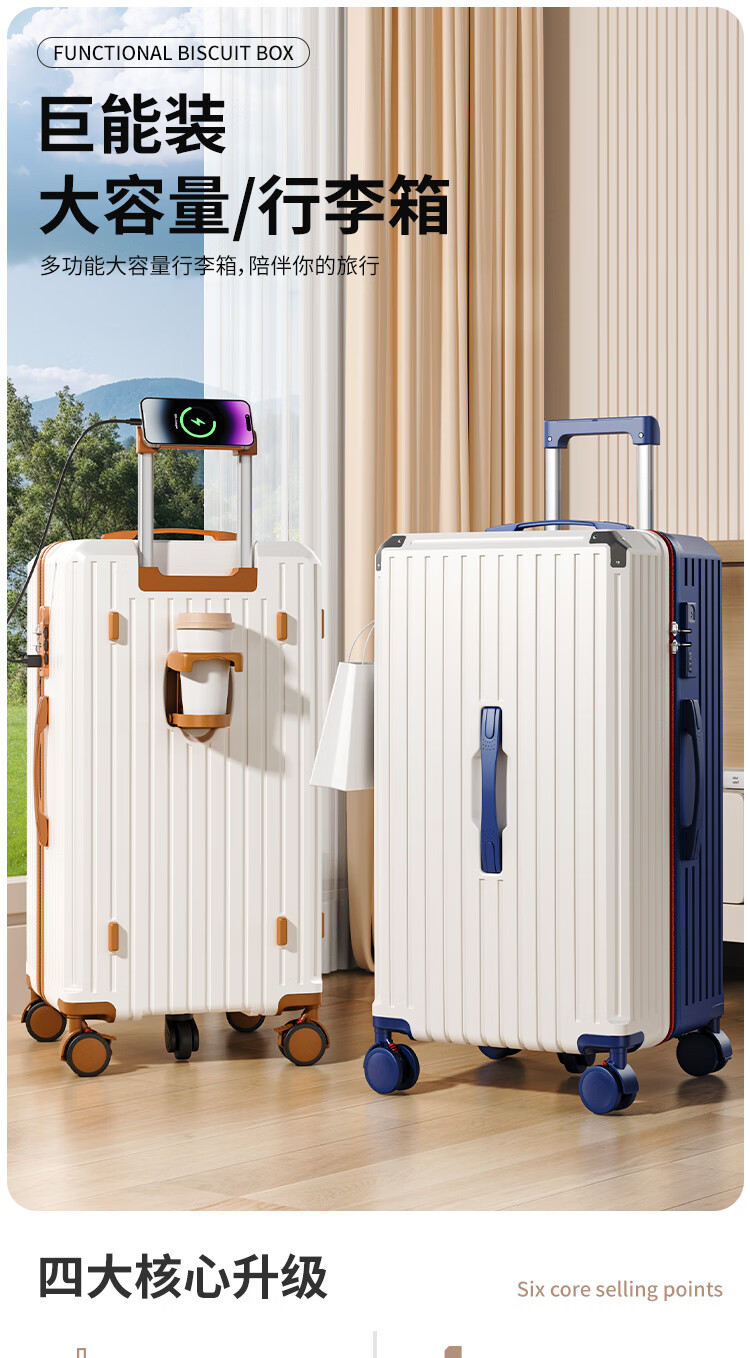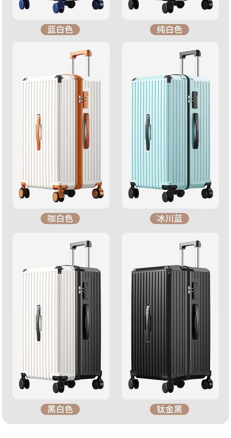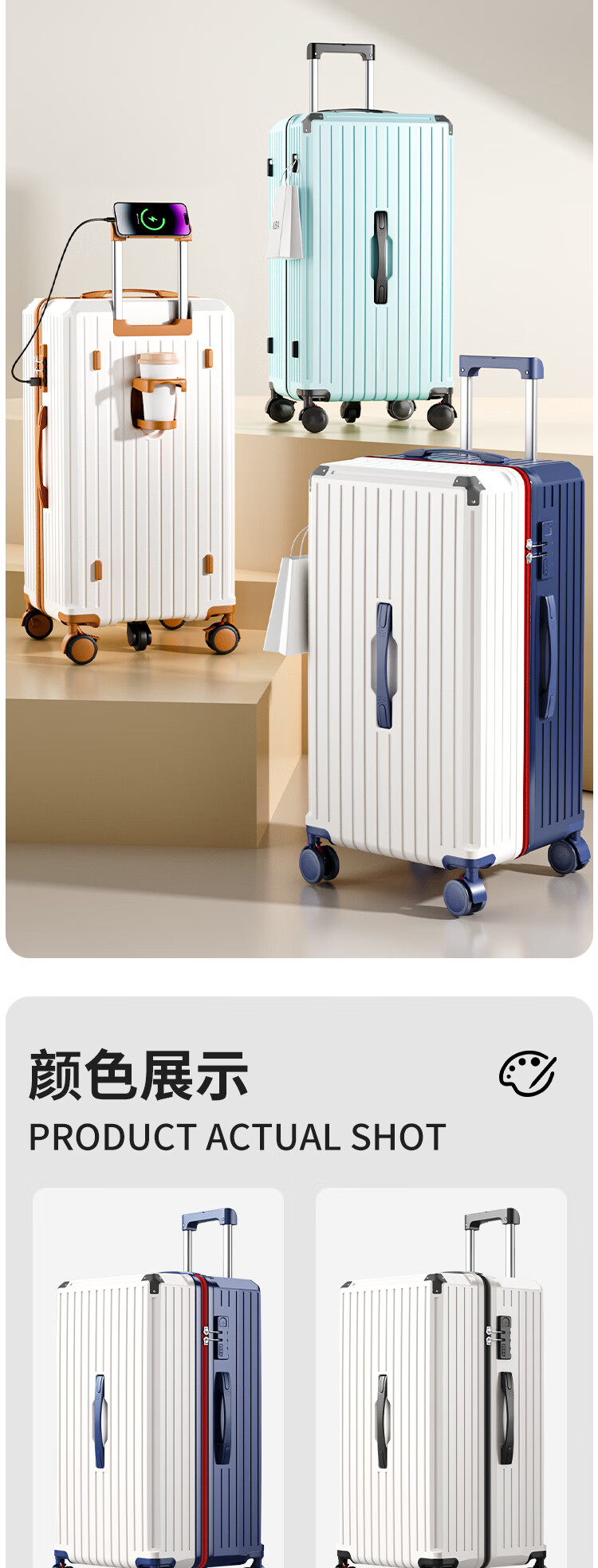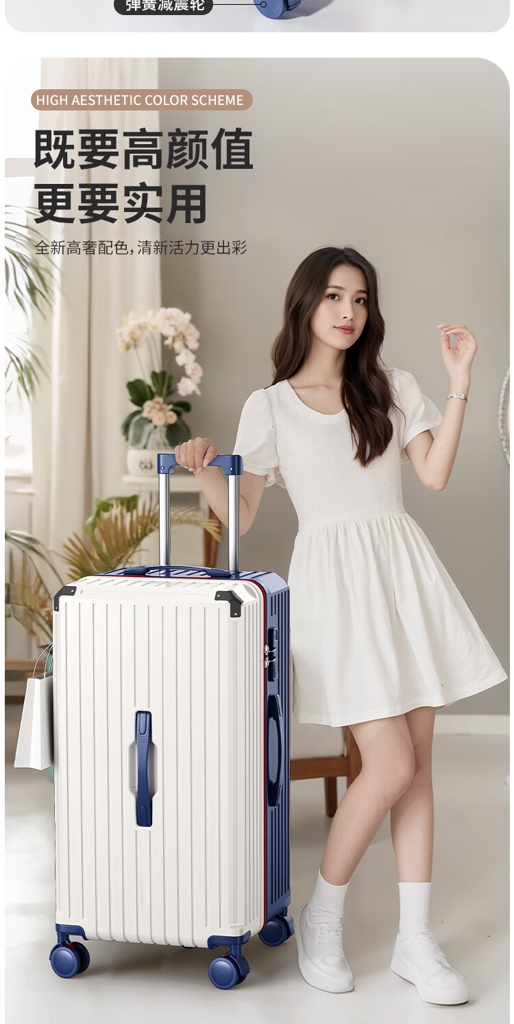甄芝梦多功能行李箱女学生结实耐用拉杆箱大容量加厚轻便旅行箱密码箱男 冰蓝色【全功能减震五轮】 26英寸 【37开大容量-上学必备】