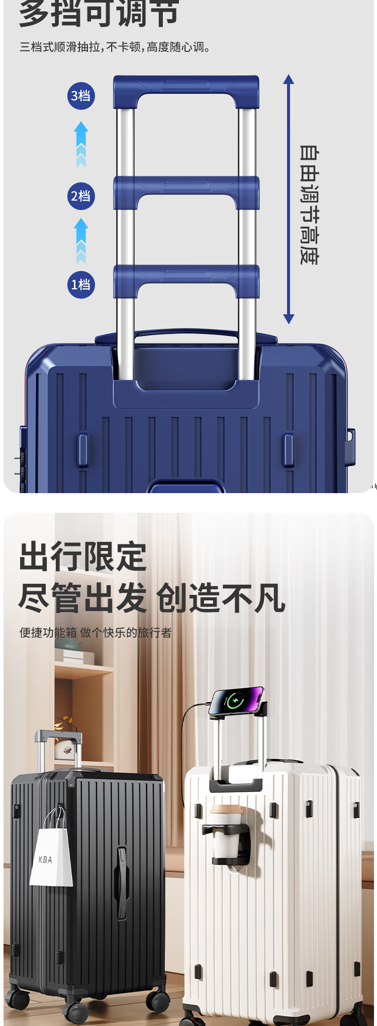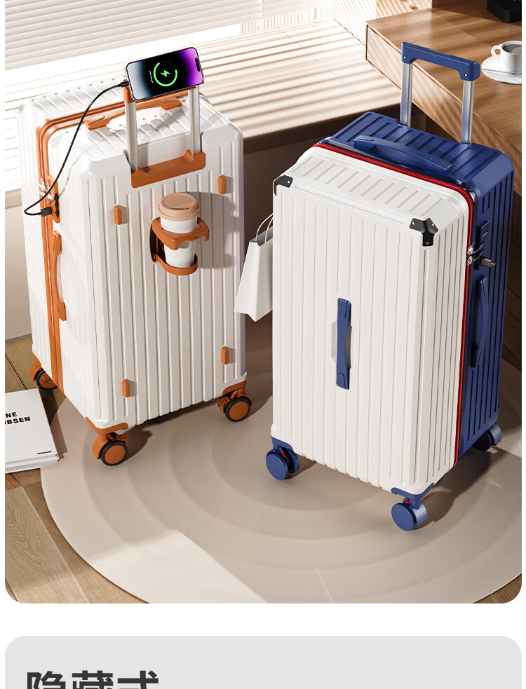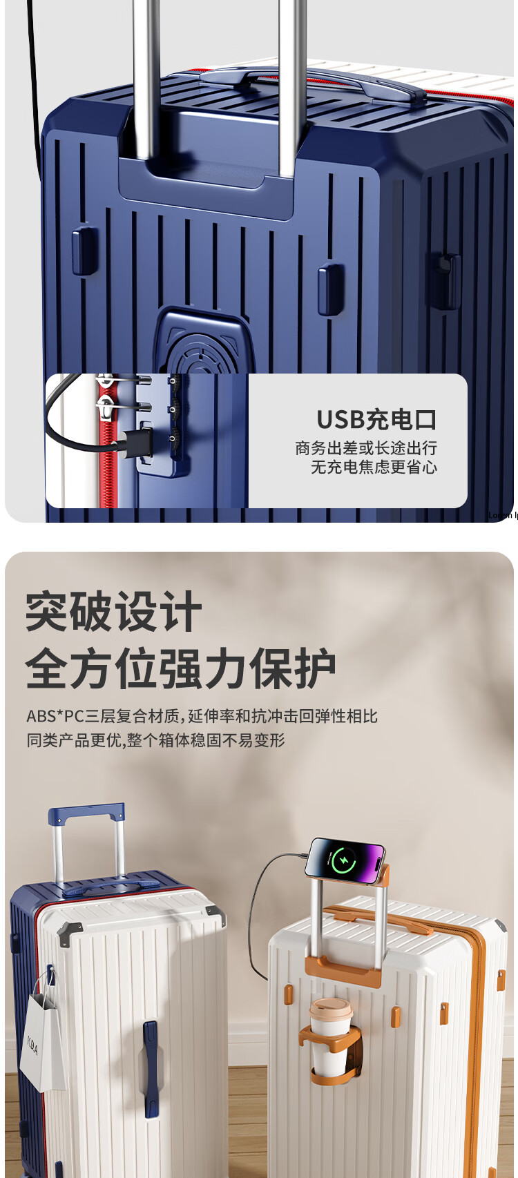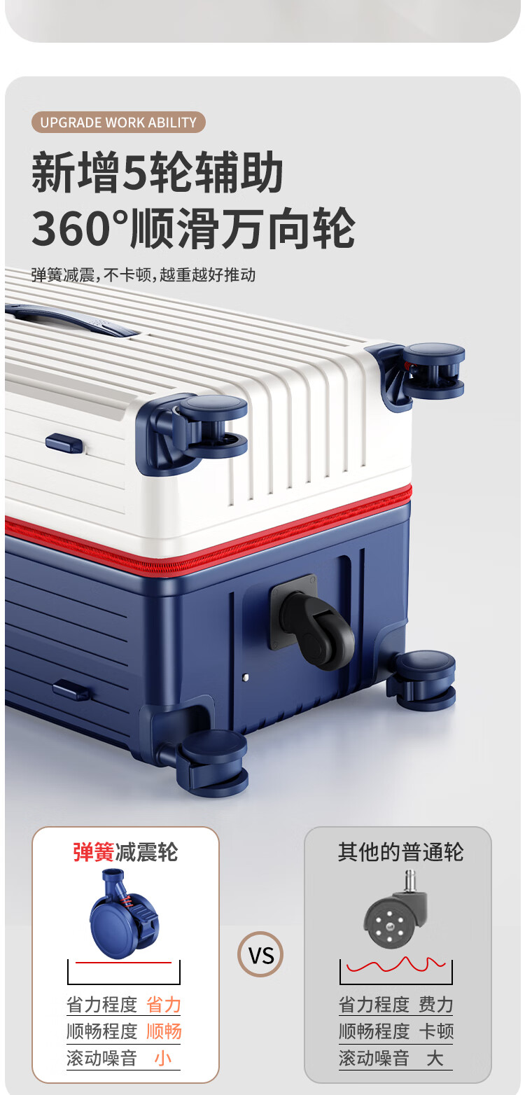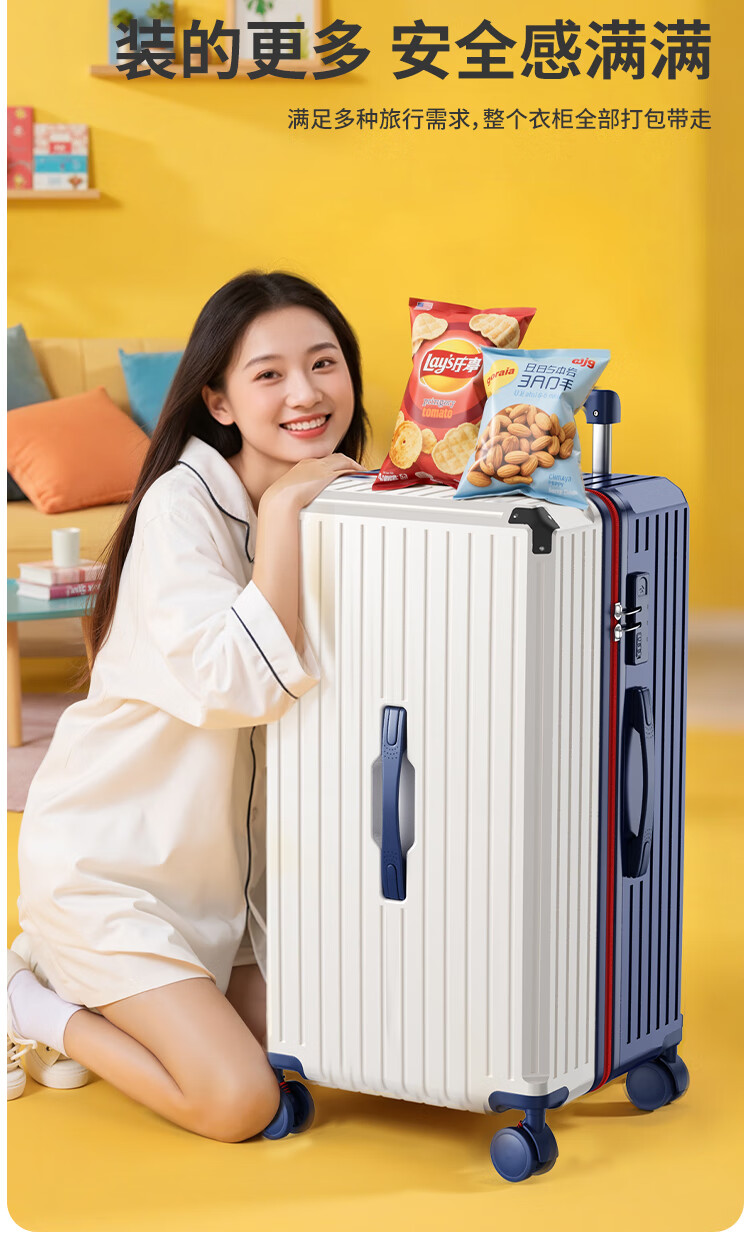甄芝梦多功能行李箱女学生结实耐用拉杆箱大容量加厚轻便旅行箱密码箱男 冰蓝色【全功能减震五轮】 26英寸 【37开大容量-上学必备】