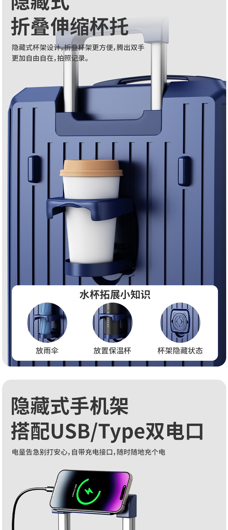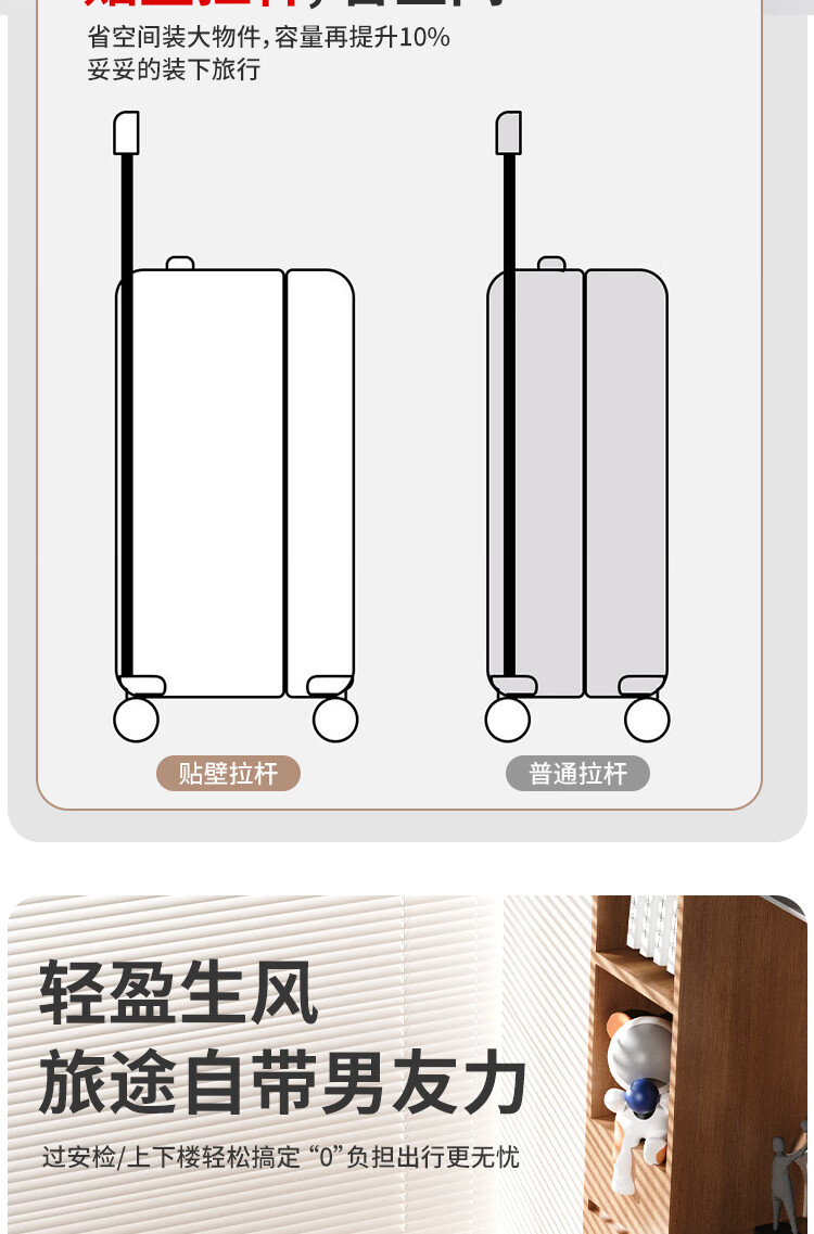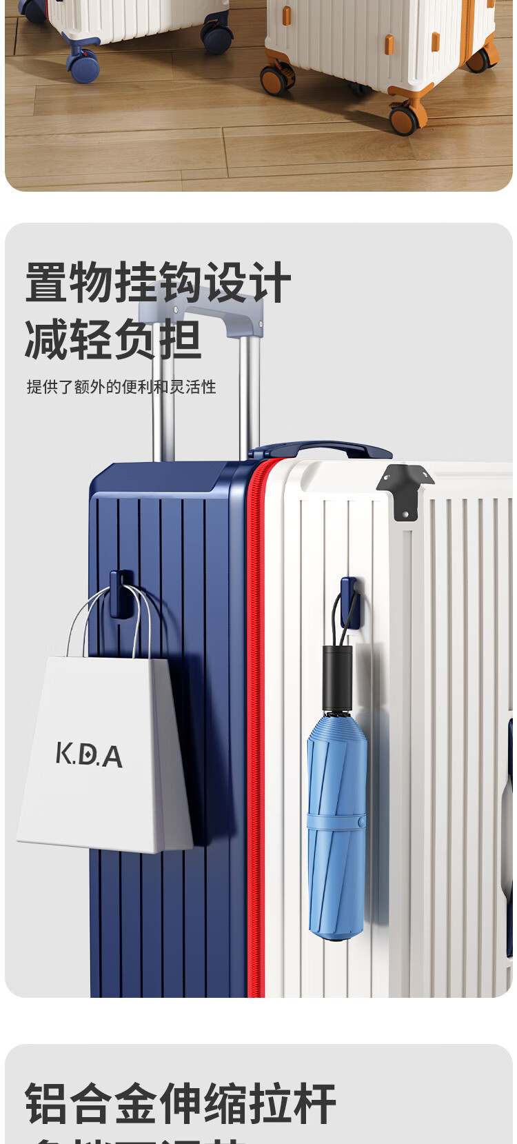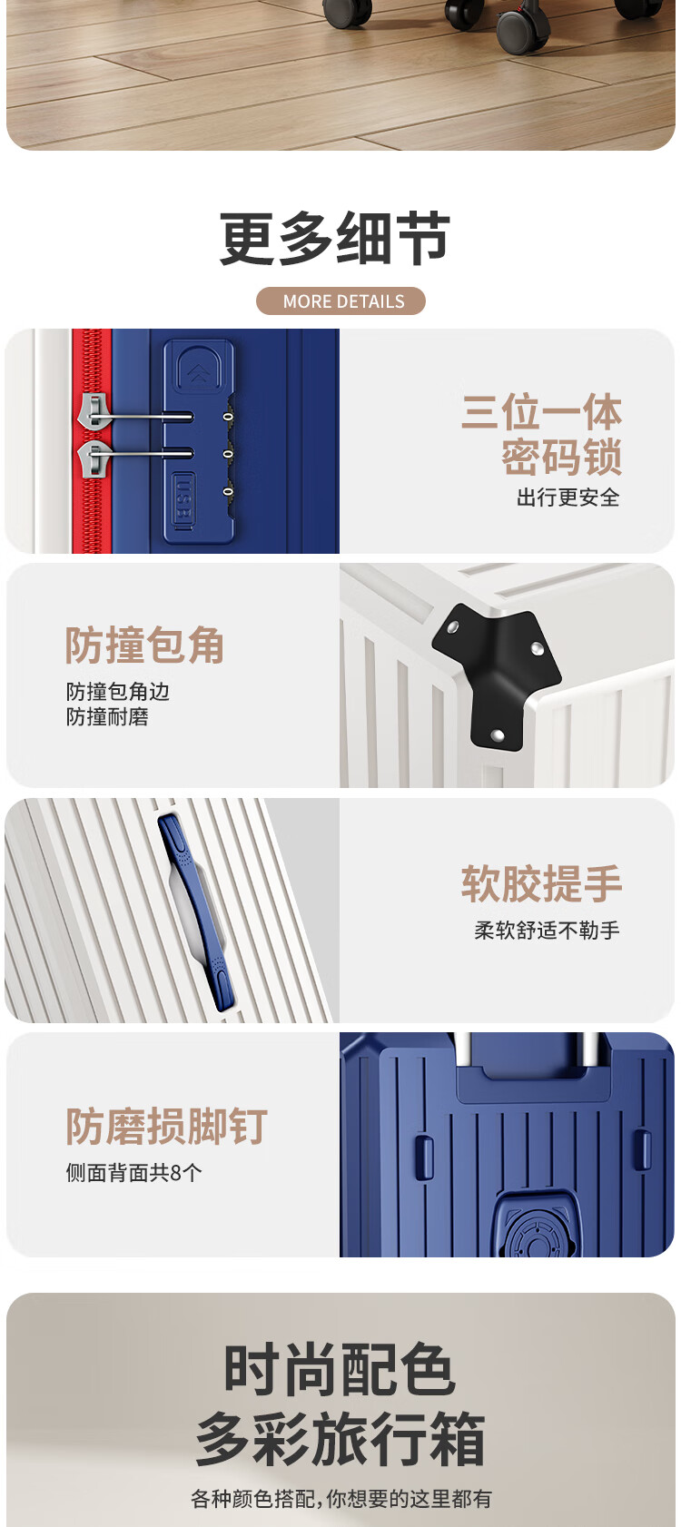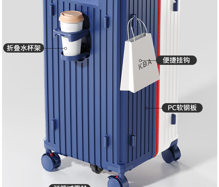 甄芝梦多功能行李箱女学生结实耐用拉杆箱大容量加厚轻便旅行箱密码箱男 冰蓝色【全功能减震五轮】 26英寸 【37开大容量-上学必备】