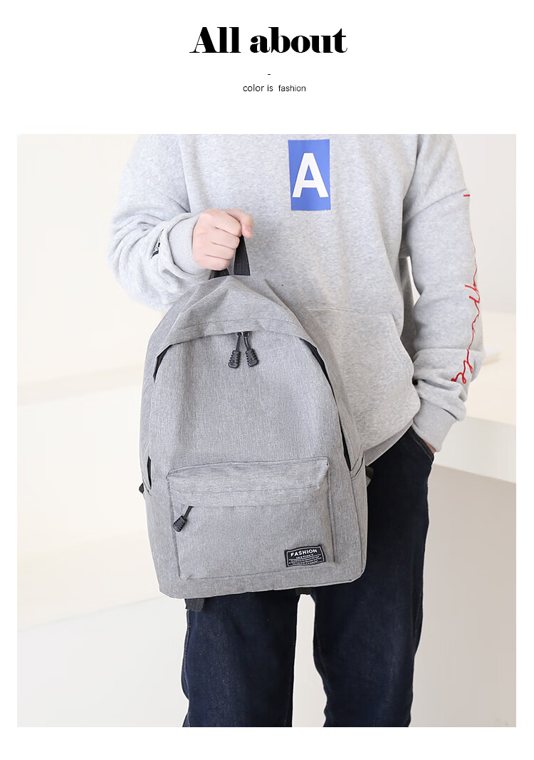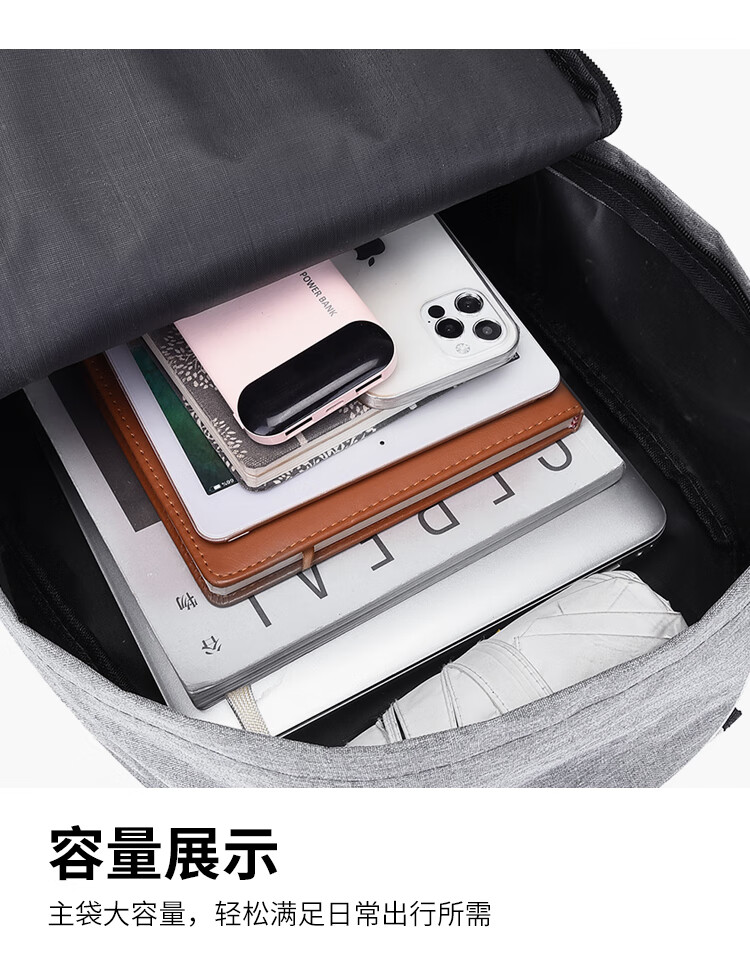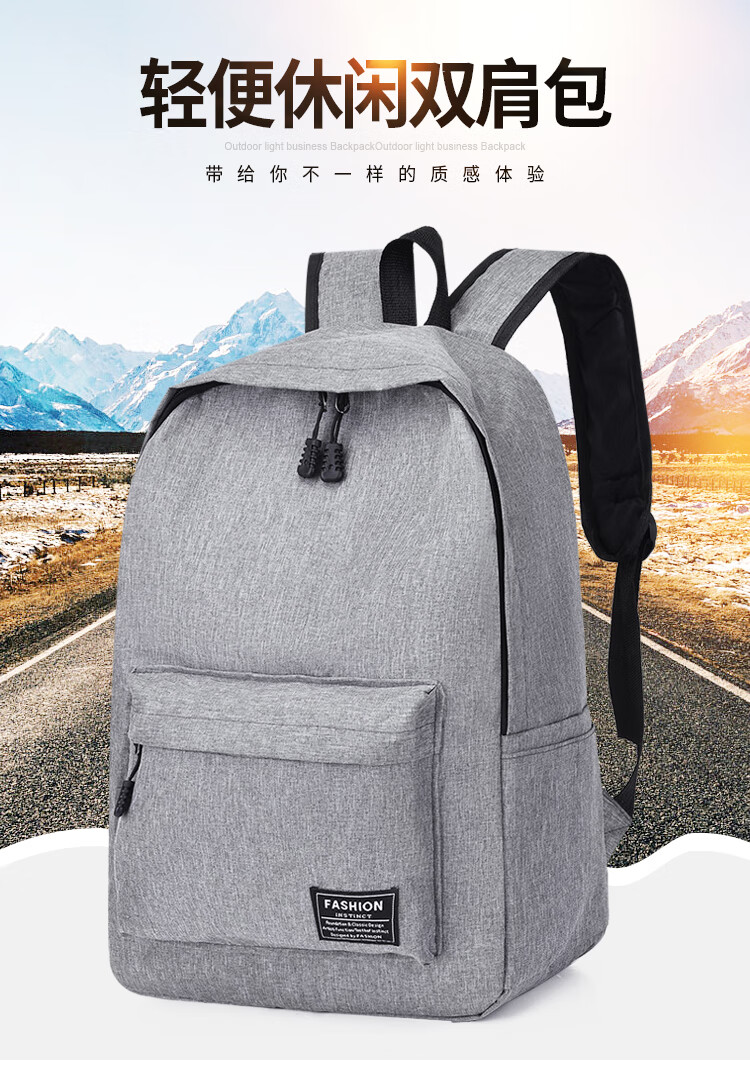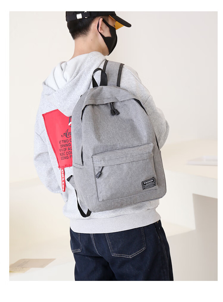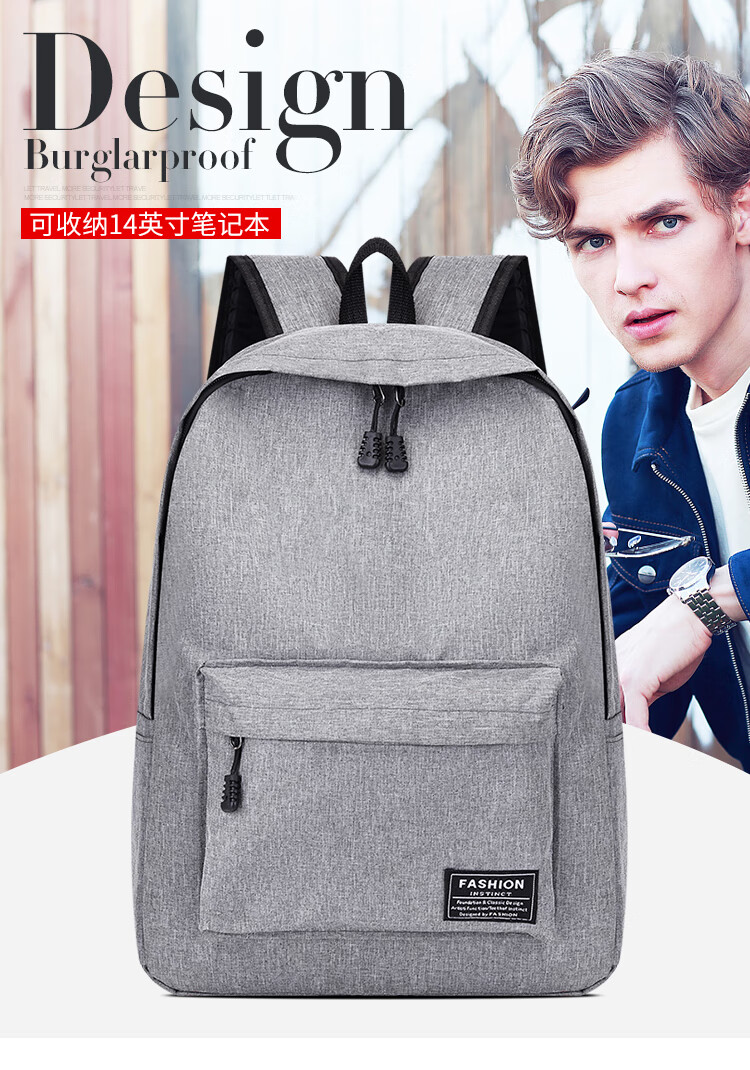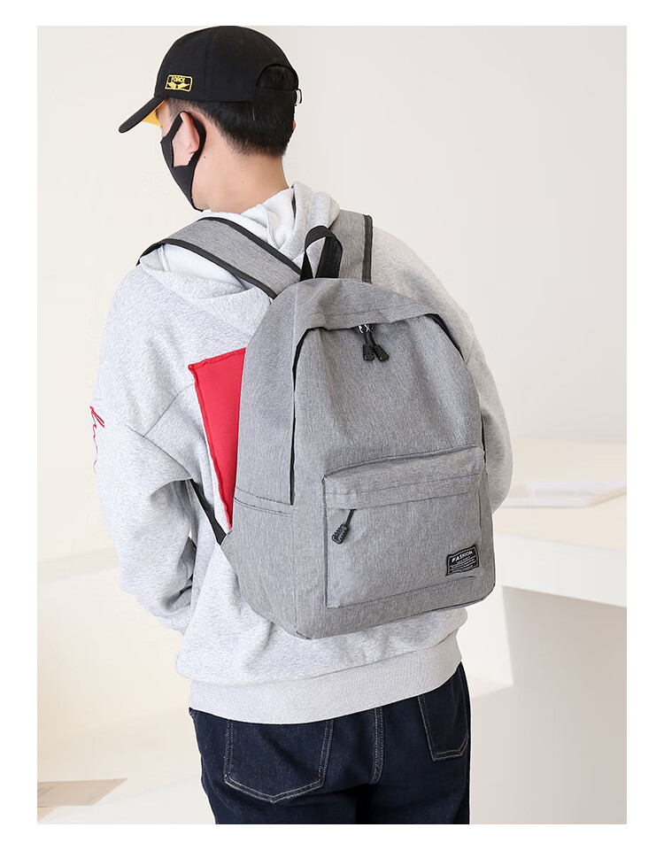 休闲书包男简约双肩包男背包男大容量中学生旅行包 标准款灰色(不能充电听歌)