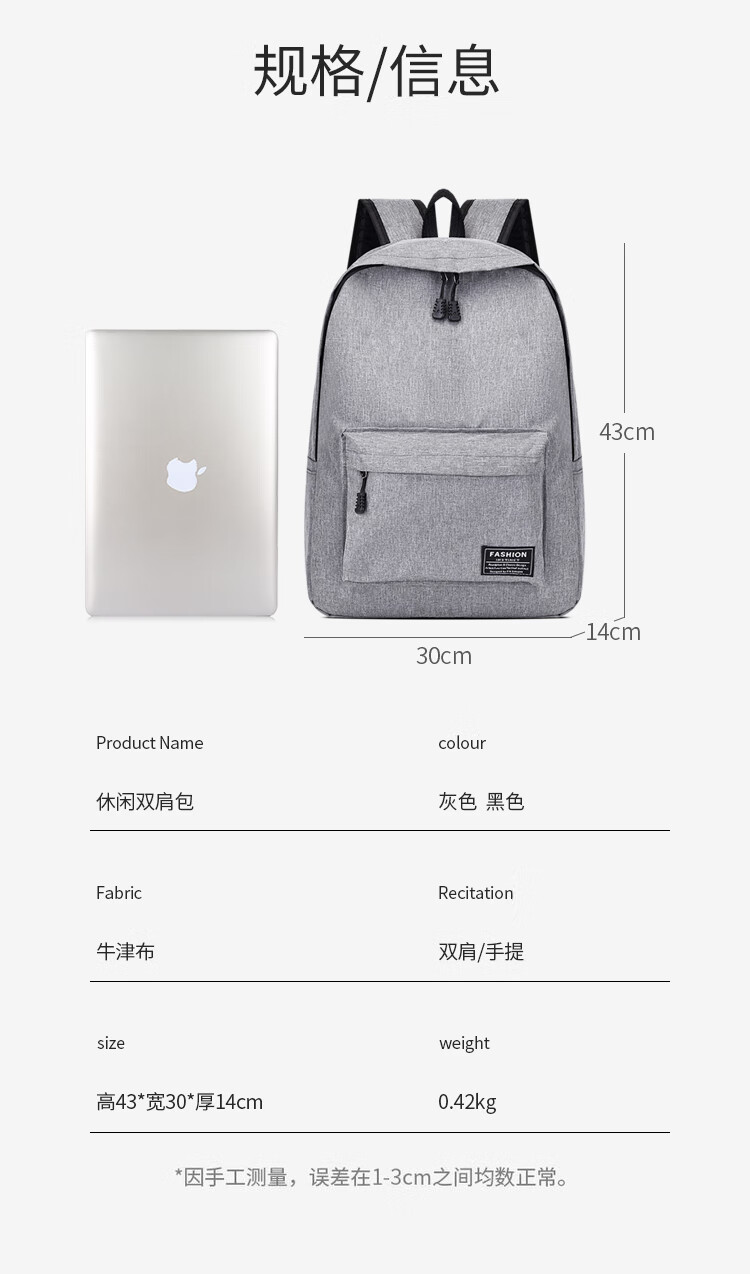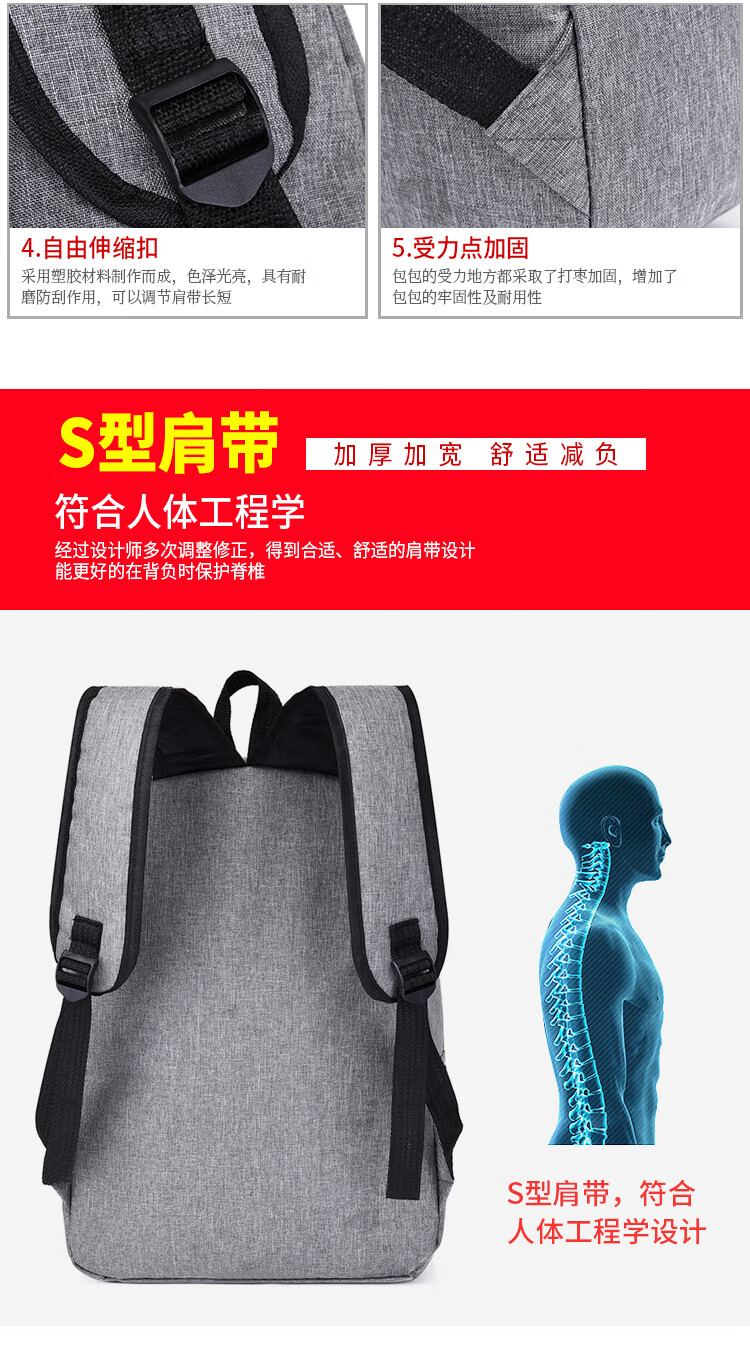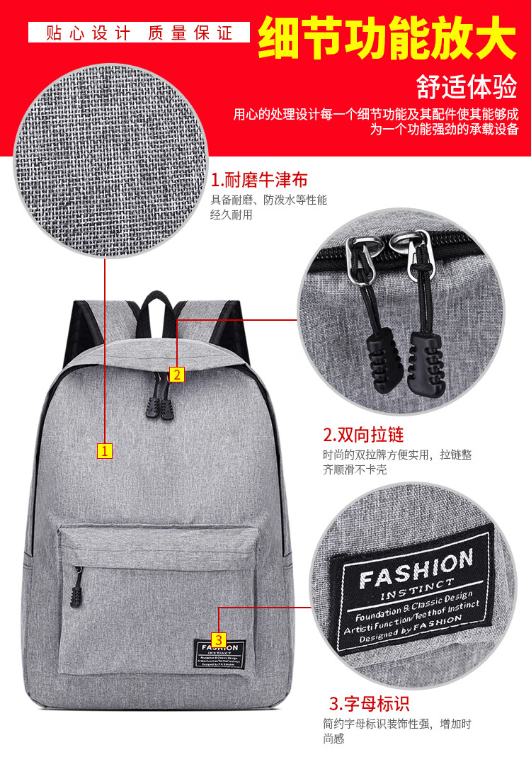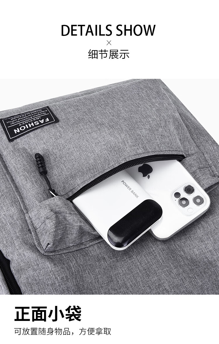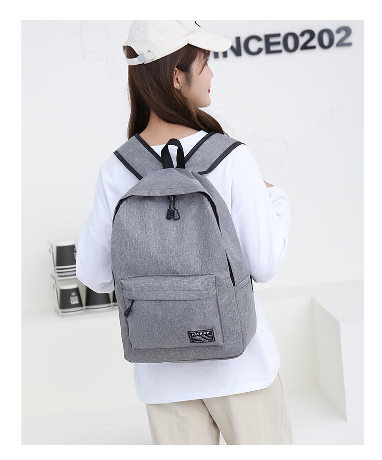 休闲书包男简约双肩包男背包男大容量中学生旅行包 标准款灰色(不能充电听歌)