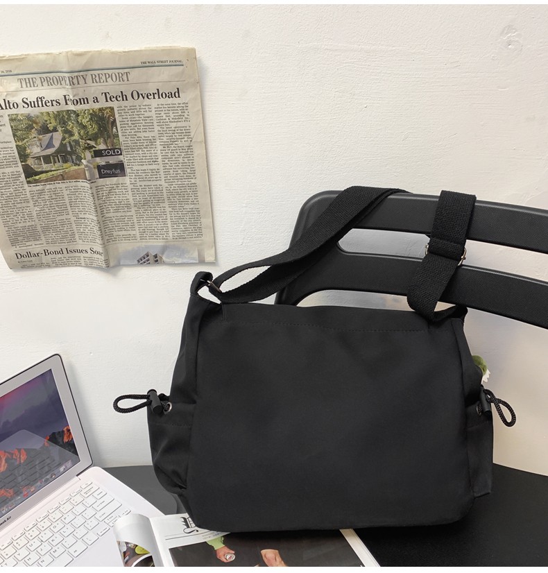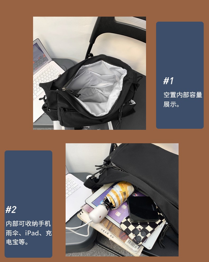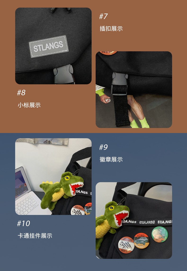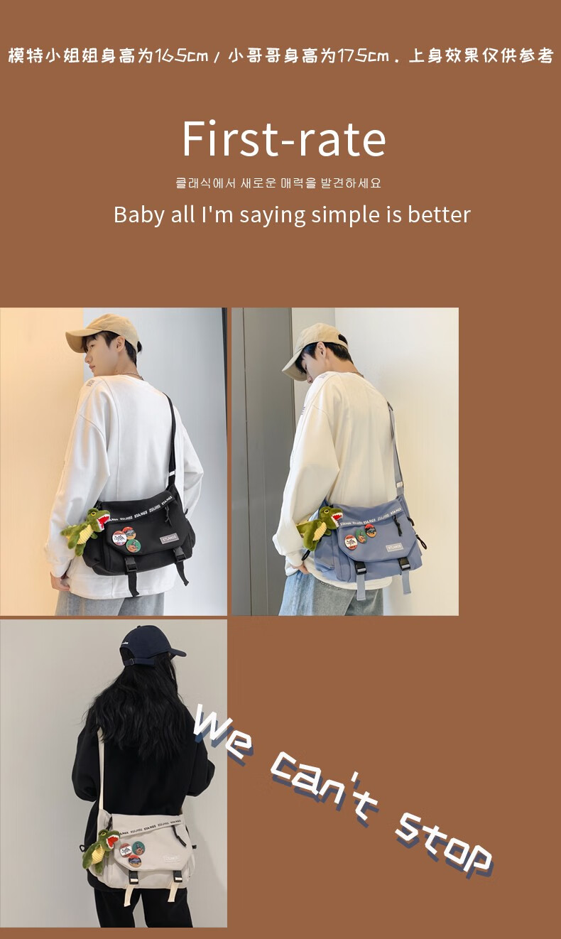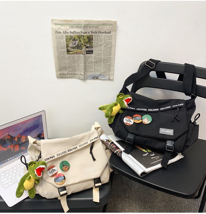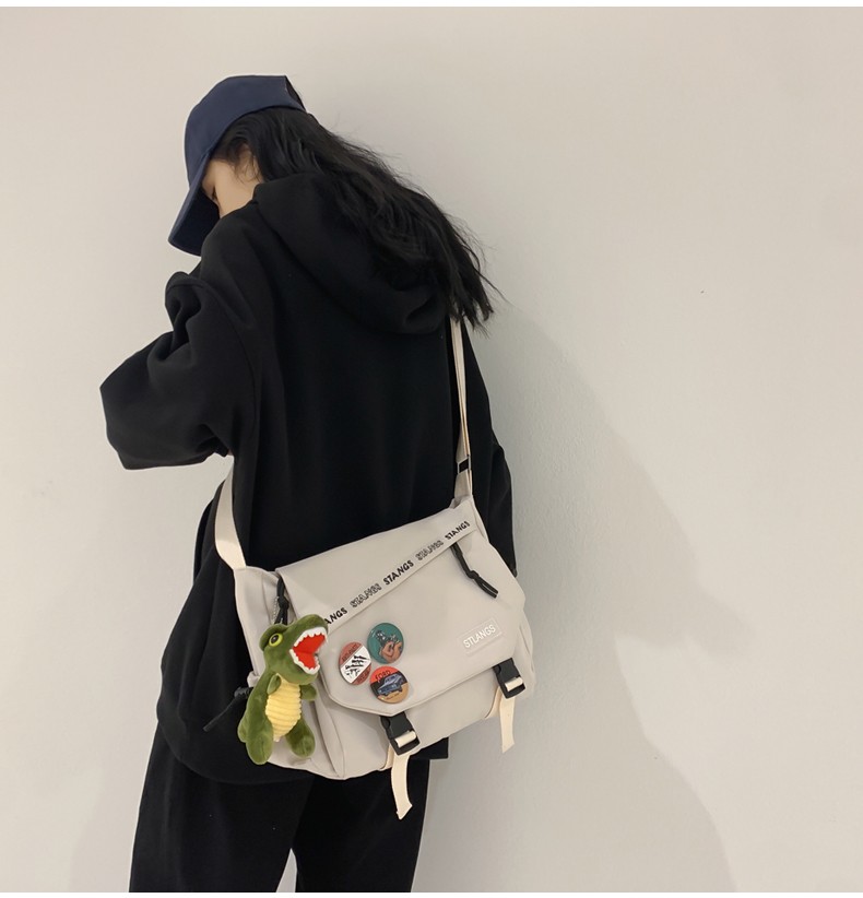 北慕 斜挎包男士潮牌学生休闲百搭潮大容量ins男生背包女邮差包单肩包 蓝色【红嘴恐龙+3个徽章】