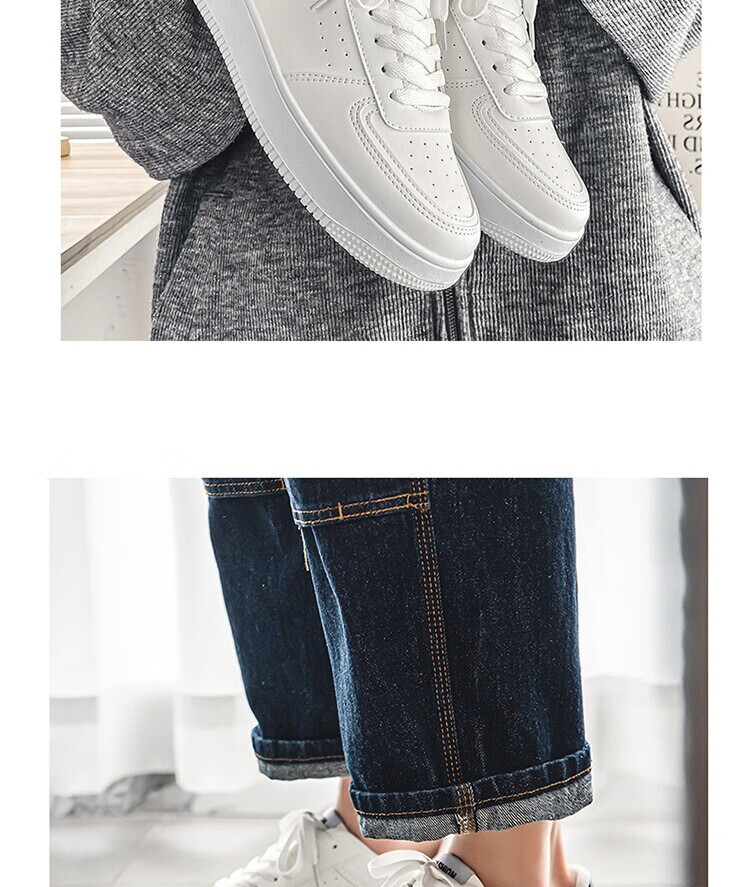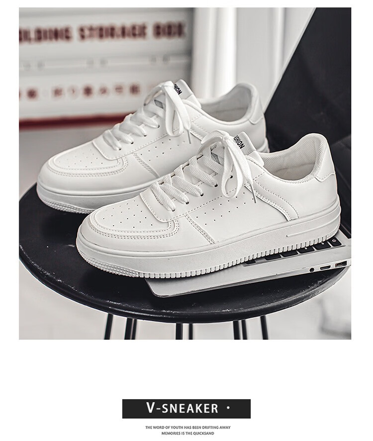 男鞋新款透气小白鞋子男夏季透气休闲百搭厚底增高纯白色运动板鞋 7007白黑色 41